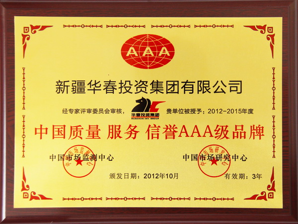 中國(guó)質(zhì)量服務(wù)信譽(yù)AAA級(jí)品牌
