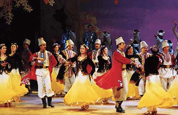 同樣也是舞曲,這種名稱和形式由來已久。除木卡姆中賽乃姆以外,各地多有以地名命名的賽乃姆。如伊犁賽乃姆、喀什賽乃姆、刀郎賽乃姆等等。賽乃姆舞是廣泛流傳于維吾爾族中,以賽乃姆音樂為伴奏的舞蹈,并無規(guī)定動作和程式。一般由男女成對而舞,人數(shù)不限,舞時歌者不舞,舞者不歌,隨著音樂情緒的發(fā)展而發(fā)展,最后總是在熱烈地快板中結(jié)束。各地賽乃姆均以其音樂風格的不同而異,但一般舞蹈動作并無十分明顯的差異。