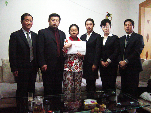 11月12日的下午,盡管冬季的寒冷已經(jīng)襲來,但在張趙瑛的家中卻充滿著溫暖之情,華春投資集團鄧潔文副總裁與企業(yè)工會、黨支部的負責(zé)人及人力資源部的管理人員等一行6人,代表集團領(lǐng)導(dǎo)和公司全員將2.18多萬元的愛心捐款送到了張趙瑛手中,她手捧捐款激動的說:“真沒想到,華春不但對自己的員工那么好,而且還對員工的親屬這么關(guān)心!”