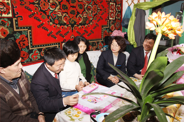 這是在2012年的“三八”國(guó)際勞動(dòng)?jì)D女節(jié)到來之際,華春投資集團(tuán)工會(huì)主席高青、工會(huì)委員鄭培君和已故員工阿里木•阿吾東生前所在企業(yè)即華春投資集團(tuán)下屬的新疆華景物業(yè)服務(wù)有限公司的管理人員一行,帶著華春投資集團(tuán)總裁李成功先生和華春全員的深情厚誼,特地前往已故員工阿里木•阿吾東的家,看望慰問了其父母與妻子、孩子,送上鮮花和慰問品,致以誠(chéng)摯的關(guān)愛之情并送上節(jié)日的祝福,使已故員工的家屬真切感受到了來自華春這個(gè)大家庭的關(guān)懷和溫暖。