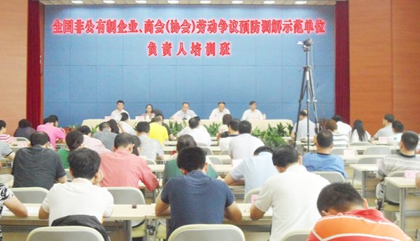 國家高度重視示范工作的進行,由國家人力資源社會保障部、人事司、調(diào)解仲裁管理司和中華全國工商聯(lián),共同組織對被確定為全國勞動爭議預(yù)防調(diào)解示范單位的負責人進行集中培訓。人社部仲裁管理司、全國工商聯(lián)、全國總工會、上海財經(jīng)大學法學院、中國人大勞動人事學院教授、上海市人社部仲裁院院長等領(lǐng)導(dǎo)和專家,從不同角度解讀了在新形勢下預(yù)防勞動爭議的思路和主要任務(wù)及有關(guān)政策、法律知識、疑難案件的評析、勞資的協(xié)商等有關(guān)勞動關(guān)系、勞動爭議的理論知識,以保障示范工作的有效開展。