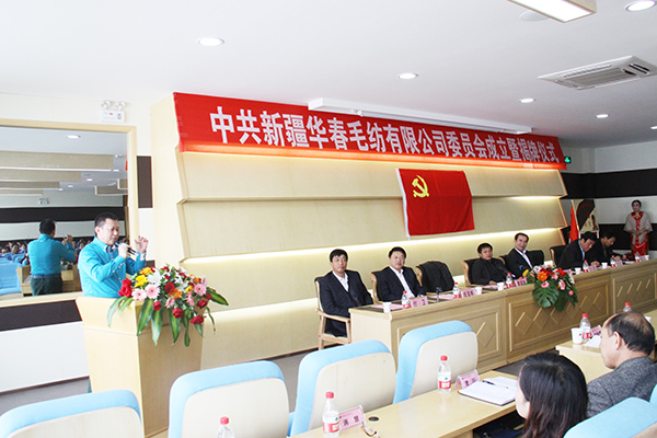 五家渠市黨委組織部常務(wù)副部長,人事局局長張寶林同志宣讀了華春毛紡黨委成立及黨委成員任命的文件。五家渠市黨委常委、副市長李金平同志和自治區(qū)政協(xié)常委、華春投資集團(tuán)董事局主席兼總裁李成功先生為華春毛紡黨委成立揭牌,并先后講了話。
