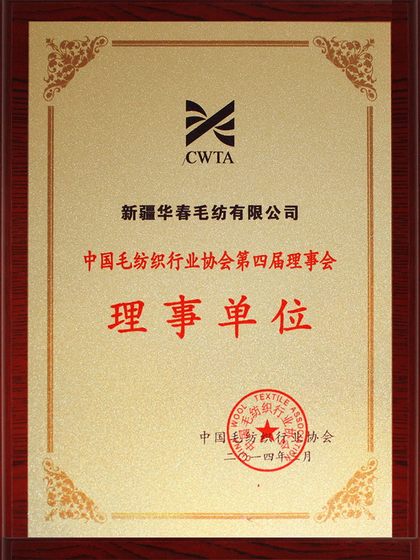 新疆華春毛紡有限公司為中國毛紡織行業(yè)協會第四屆理事會理事單位