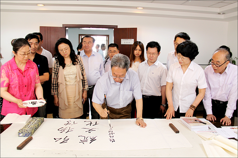 儀式結(jié)束后,王蒙現(xiàn)場(chǎng)揮毫潑墨,為建立在新疆華春投資集團(tuán)的新疆首家國學(xué)培訓(xùn)基地題詞:“弘揚(yáng)傳統(tǒng)文化”,并為《華春視野》刊物簽名。
