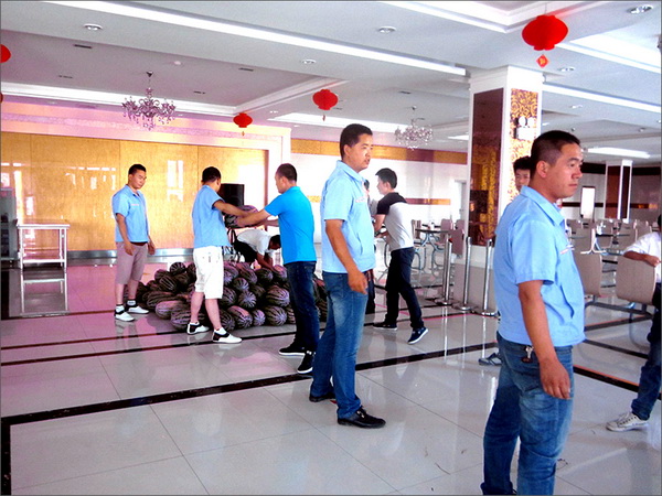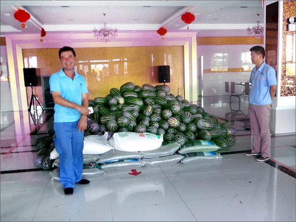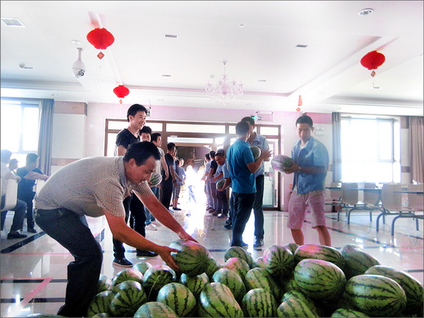 在炎炎暑夏的7月底,五家渠師市工會(huì)主席董亮全一行5人,前往行業(yè)龍頭企業(yè)新疆華春毛紡工業(yè)園,為奮戰(zhàn)在大生產(chǎn)一線的各族員工送上關(guān)愛的“清涼大包”——滿滿一車的5000公斤西瓜、400公斤綠豆、100公斤白砂糖等防暑降溫品。