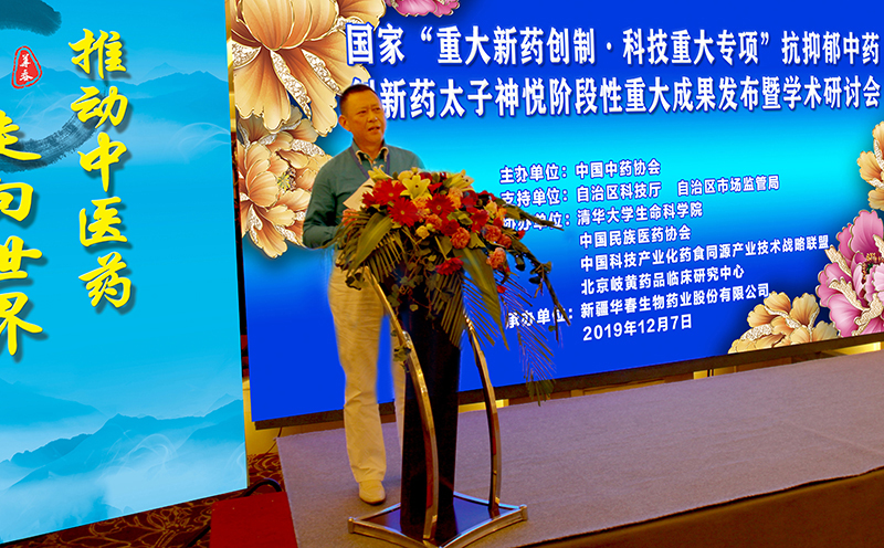 首先,受中國(guó)工程院院士、中國(guó)中藥協(xié)會(huì)黃潞琦會(huì)長(zhǎng)委托,中國(guó)中藥協(xié)會(huì)常務(wù)副會(huì)長(zhǎng)劉張林先生致辭,他說(shuō),歷經(jīng)17年的艱辛努力,在國(guó)家衛(wèi)計(jì)委、科技部、國(guó)家藥監(jiān)局、新疆維吾爾自治區(qū)人民政府高度重視與大力支持下,由清華大學(xué)、新疆華春生物藥業(yè)股份有限公司共同研發(fā)的中國(guó)原創(chuàng)性抗抑郁中藥創(chuàng)新藥太子神悅順利完成三期臨床研究總結(jié),結(jié)果顯示,太子神悅膠囊的有效率為75.14%,與經(jīng)典化學(xué)藥氟西汀相當(dāng),而在安全性以及癥候改善方面太子神悅具有明顯優(yōu)勢(shì),充分體現(xiàn)了中醫(yī)藥在精神神經(jīng)疾病領(lǐng)域的特色與生命力。能夠取得如此成果,真是可喜可賀!抑郁癥已經(jīng)成為全球致殘率第一的重大疾患,并已超過(guò)心腦血管病成為全球第二大疾病。太子神悅階段性重大成果是落實(shí)習(xí)近平總書(shū)記關(guān)于“守正創(chuàng)新”發(fā)展中醫(yī)藥事業(yè)重要指示的代表性進(jìn)展,填補(bǔ)了中國(guó)抗抑郁中藥原創(chuàng)性新藥創(chuàng)制的空白,必將對(duì)新疆中醫(yī)藥產(chǎn)業(yè)以及區(qū)域優(yōu)勢(shì)中藥材種植業(yè)的快速發(fā)展產(chǎn)生重大影響,同時(shí)對(duì)于推動(dòng)中醫(yī)藥現(xiàn)代化也將具有里程碑意義!