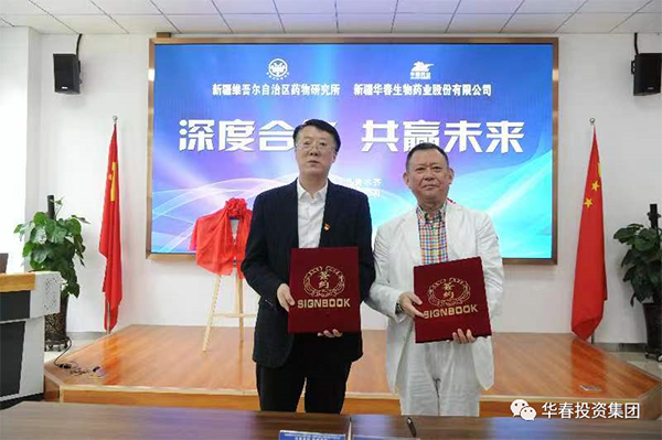 新疆華春生物藥業(yè)股份有限公司與自治區(qū)藥物研究所于4月 28日簽訂了深度合作協(xié)議,就雙方合作組建的新疆藥物研發(fā)中心華春生物藥業(yè)示范協(xié)同創(chuàng)新基地、烏魯木齊天山藥谷華春西部生物工程技術(shù)研究院舉行了揭牌。旨在更深層次多方面充分發(fā)揮雙方優(yōu)勢(shì),強(qiáng)強(qiáng)聯(lián)合,實(shí)現(xiàn)共贏。華春投資集團(tuán)董事局李成功主席與自治區(qū)藥物研究所邢建國(guó)所長(zhǎng)以及雙方的相關(guān)管理人員參加了簽約揭牌儀式。