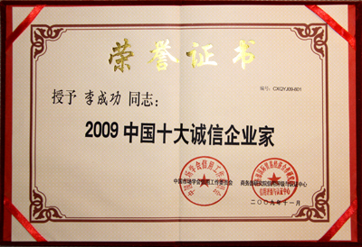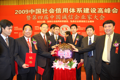 “企業(yè)信用評價AAA①級誠信企業(yè)”和“2009中國十大誠信企業(yè)家”獎項,是商務部研究院信用評級與認證中心依據國家有關法律法規(guī),按照一定程序,集企業(yè)的債權債務管理、合同履行、公共記錄以及財務等信息,通過企業(yè)誠信評價模型進行科學評估出來的,旨在區(qū)分良莠、獎優(yōu)罰劣,為我國企業(yè)參與國內外市場競爭創(chuàng)造必要的信用條件。信用等級由低向高依次為A級、AA級、AAA級、AAA①級。對信用等級達到A級以上的企業(yè),商務部都要在國家級權威媒體上進行公示。