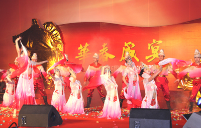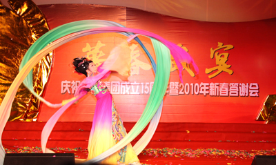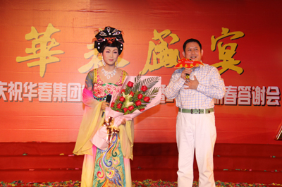 大型舞蹈《甜甜的歌兒迎賓客》拉開了慶典晚會的序幕,自治區(qū)工商聯(lián)黨組副書記、常務(wù)副主席陳建華發(fā)表了熱情洋溢的致辭:“過去的15年,華春投資集團(tuán)在創(chuàng)造社會財(cái)富、加快步伐的同時,積極主動、義不容辭地承擔(dān)社會責(zé)任,創(chuàng)造就業(yè)機(jī)會。關(guān)愛企業(yè)員工,在全區(qū)民營企業(yè)中率先建立員工子女助學(xué)基金和員工父母敬老基金,大力開展捐資助學(xué)活動,積極參與光彩事業(yè)和社會公益事業(yè),一次次為社會弱勢群體奉獻(xiàn)出了華春人的一片愛心。在15年的發(fā)展歷程中,華春投資集團(tuán)的努力,得到國家和社會的公認(rèn),獲得了諸多令業(yè)內(nèi)贊嘆的榮譽(yù)。歷史又將進(jìn)入了一個新的起點(diǎn),2010年是國務(wù)院“非公36條”和自治區(qū)黨委8號文件出臺五周年,今年5月自治區(qū)將召開推動非公有制企業(yè)和中小企業(yè)發(fā)展的工作會議,華春投資集團(tuán)將迎來快速發(fā)展的新機(jī)遇。在此,我們衷心的祝愿:華春投資集團(tuán)在新的起點(diǎn)上,更加振奮精神、更加團(tuán)結(jié)奮斗、更加開拓前進(jìn),努力迎來2個、第3個、更多加更輝煌的15年!在此,我們衷心的希望:華春團(tuán)隊(duì)在今后的若干個15年中,為新疆經(jīng)濟(jì)發(fā)展、為整個社會,再源源不斷的譜寫出創(chuàng)新、奮發(fā)、輝煌的新篇章!”