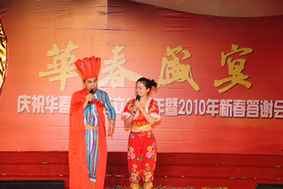 專業(yè)演員與華春投資集團(tuán)的員工為大家獻(xiàn)上了舞蹈、雜技、魔術(shù)大合唱等節(jié)目。期間,一次次的抽獎,掀起了一陣陣的驚喜。特邀嘉賓李玉剛的精彩表演,把晚會推向高潮。