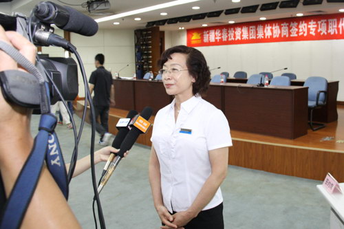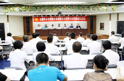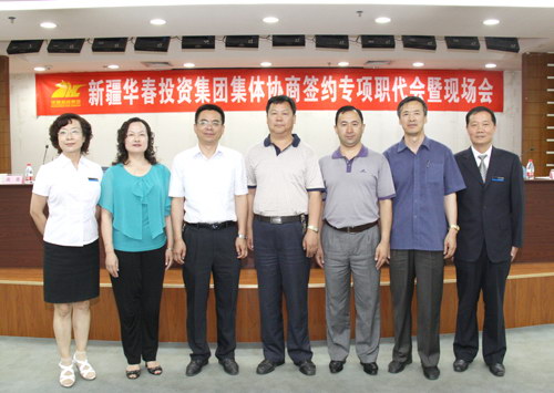 6月15日上午,對于新疆華春投資集團全員來說,是個神圣的日子,在我們偉大的中國共產(chǎn)黨成立90周年的前夕,在全社會著力構(gòu)建和諧、改善民生的關(guān)鍵時刻,作為高新區(qū)(新市區(qū))簽訂三項集體合同的重點示范企業(yè)新疆華春投資集團集體協(xié)商簽約專項職代會暨現(xiàn)場會,在高新區(qū)管委會5樓多功能廳隆重舉行!自治區(qū)總工會、烏魯木齊市總工會和高新區(qū)(新市區(qū))區(qū)委領(lǐng)導出席會議,高新區(qū)(新市區(qū))轄區(qū)內(nèi)各主要企業(yè)派代表前來觀摩,共同見證了受華春投資集團法定代表人委托的企業(yè)方代表周躍江先生和職工方的代表華春投資集團工會主席高青同志,簽訂“三項合同”即《集體合同》、《工資集體協(xié)議合同》和《女職工權(quán)益保護專項集體合同》。