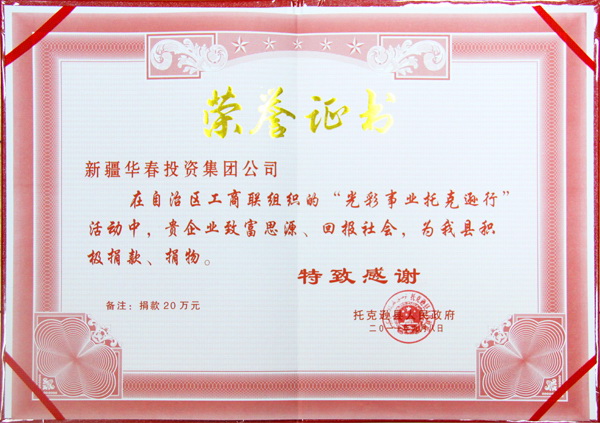 此次捐贈款項用于解決托克遜縣農(nóng)牧民困難群眾生產(chǎn)資金周轉(zhuǎn)和貧困家庭子女上學(xué)等問題。華春集團以企業(yè)的社會責(zé)任感,歷來重視扶貧事業(yè),積極參與光彩事業(yè),回饋社會,為構(gòu)建和諧新疆做出了民營企業(yè)的一份貢獻(xiàn)。