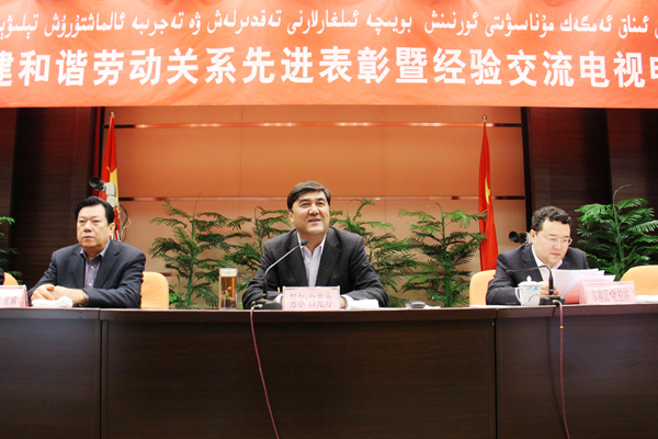 自治區(qū)構(gòu)建和諧勞動(dòng)關(guān)系先進(jìn)表彰暨經(jīng)驗(yàn)交流電視電話會(huì)議出席的領(lǐng)導(dǎo)