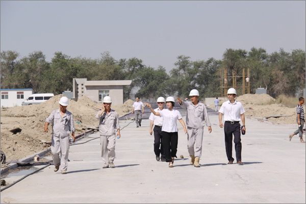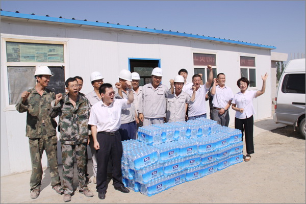 在新疆華春投資集團(tuán)工會發(fā)出“決戰(zhàn)50天 建成毛紡工業(yè)園”號召后的20天,于7月31日集團(tuán)工會主席高青攜編輯部全員,帶著李成功總裁和華春全體員工的期望,前往五家渠毛紡工業(yè)園項目建設(shè)工地,對工程技術(shù)人員“誓保毛紡工業(yè)園如期建成”諾言的兌現(xiàn)情況進(jìn)行了解,同時對奮戰(zhàn)在一線的工程部、華春毛紡公司的員工和設(shè)備安裝人員進(jìn)行了慰問,送去了礦泉水。