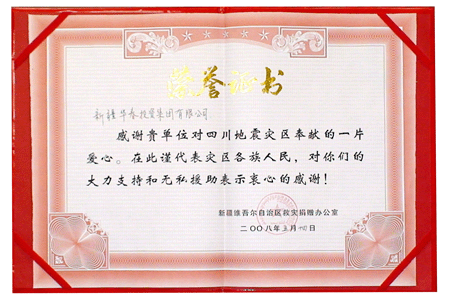 新疆華春投資集團(tuán)將向四川汶川災(zāi)區(qū)捐款交到自治區(qū)汶川捐款辦
