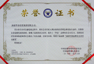 《2009中國(guó)品牌社會(huì)責(zé)任貢獻(xiàn)獎(jiǎng)》